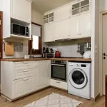 Acest apartament oferă o bucătărie complet echipată cu un cuptor cu microunde, frigider și sticlărie, precum și echipamente de preparare a ceaiului și cafelei.